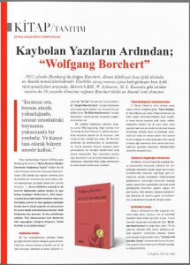 Şeyma Kısakürek Sönmezocak – Kaybolan Yazıların Ardından; “Wolfgang Borchert” – Kitabın Ortası Dergisi, Aralık 2018, sayı 21.